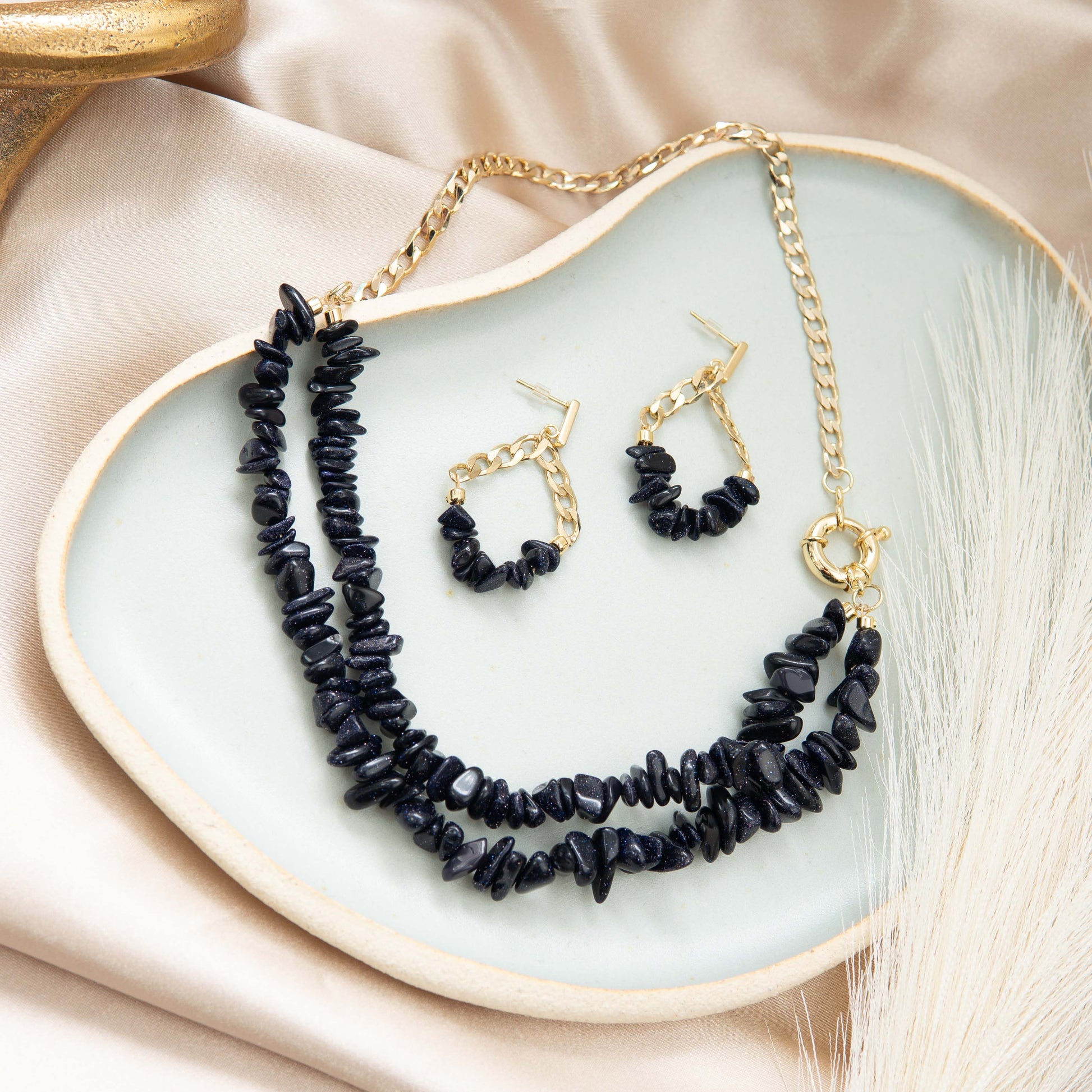 Encantadora pulsera en espiral con piedra Howlita azul y blanca, cristal azul, piedra Ágata azul y charm infinito.