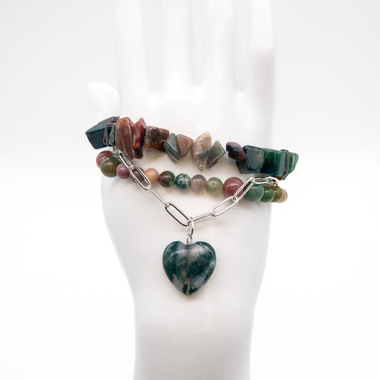 天然 Unakite 串珠项链,送给母亲的礼物。