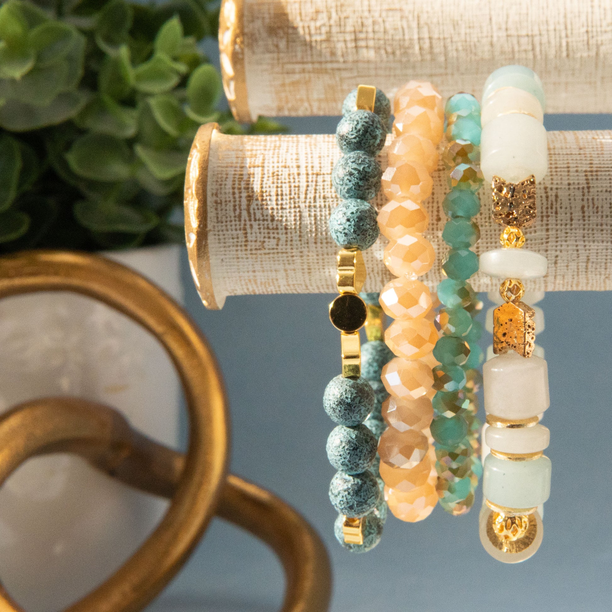 the hemimorphite stone in the Azure Ember stack bracelet brings positive vibrations full of joy, happiness, and uplifting energy. It's the perfect stone to work with or carry when you're having a day where emotions may be overwhelming you. Hemimorphite also enhances one's communicative abilities and helps soften the words you choose.