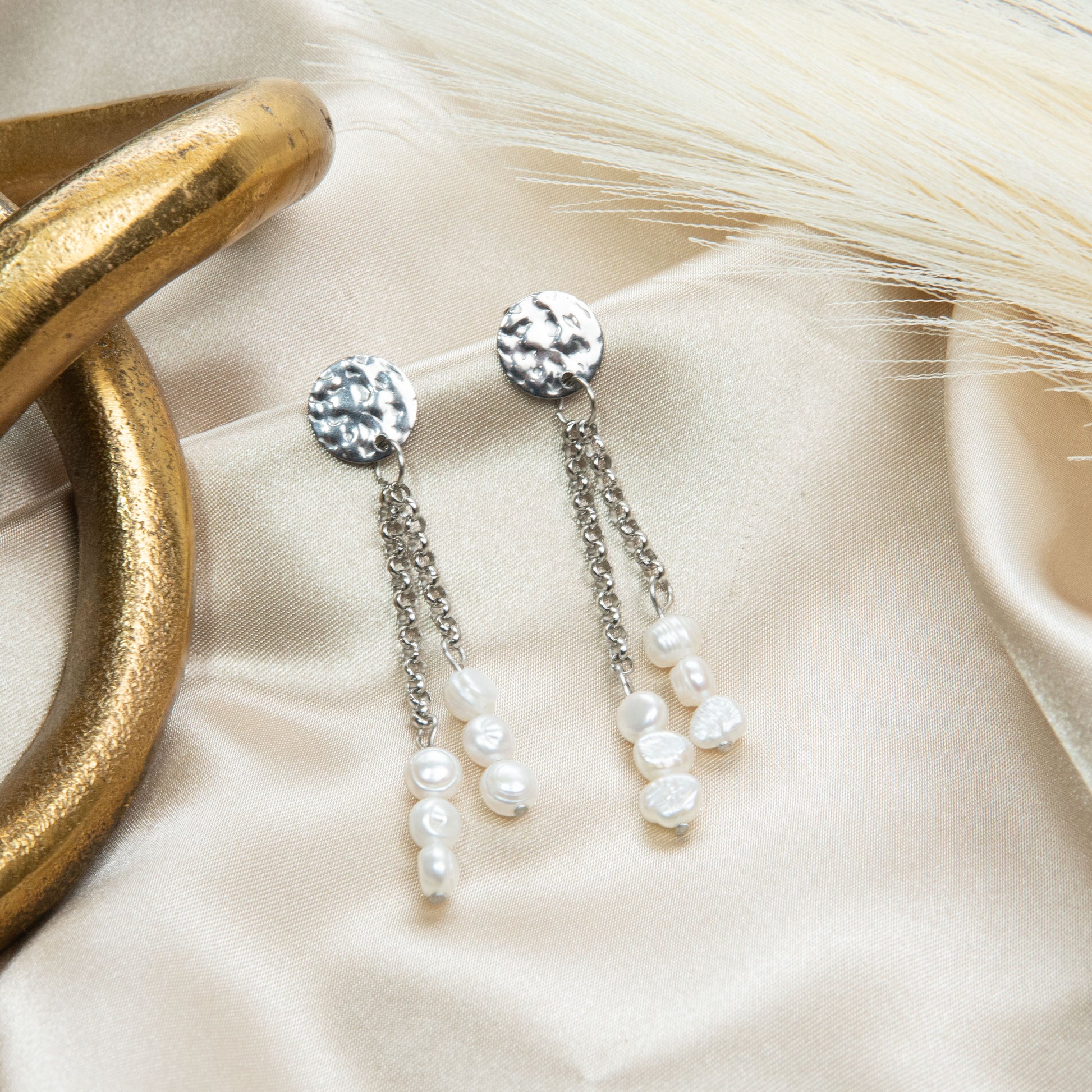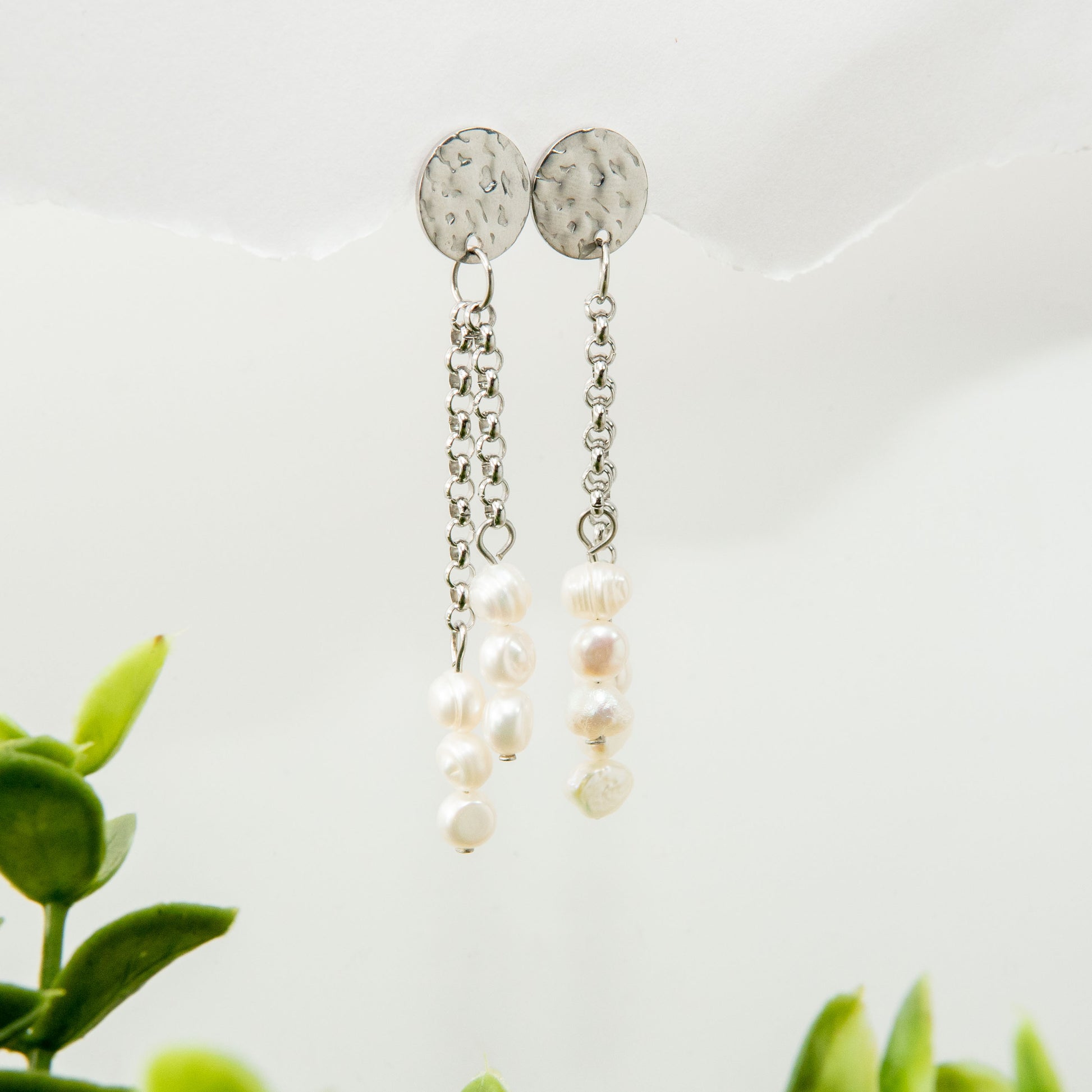 Timeless elegance Cultured Pearl Dangle Drop Earrings. Handcrafted with lustrous pearls and a durable stainless-steel chain, these earrings are the perfect addition to any outfit, casual or formal. Screaming classic but chic boss babe vibes.