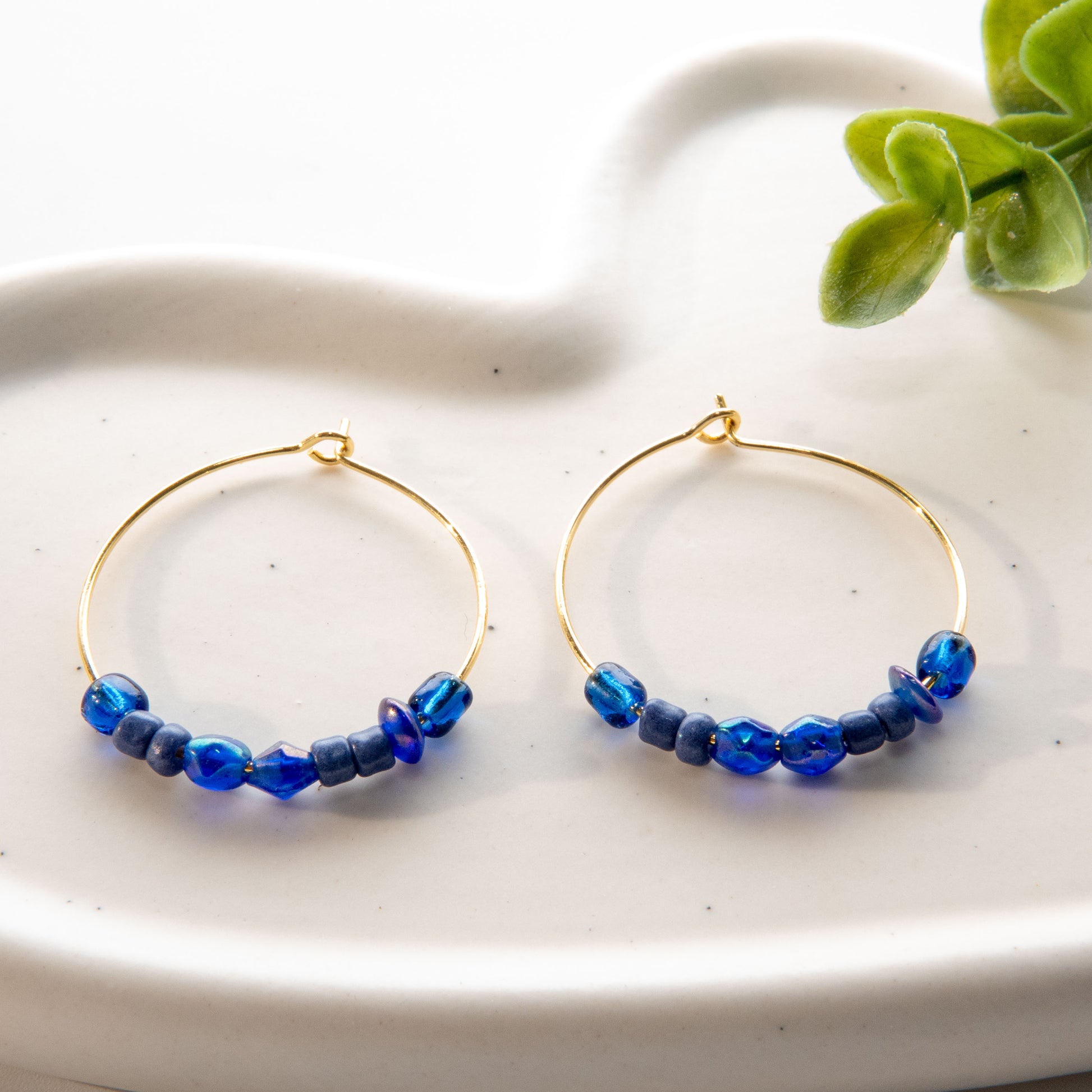 Gold Lapis Blue Hoop Earrings