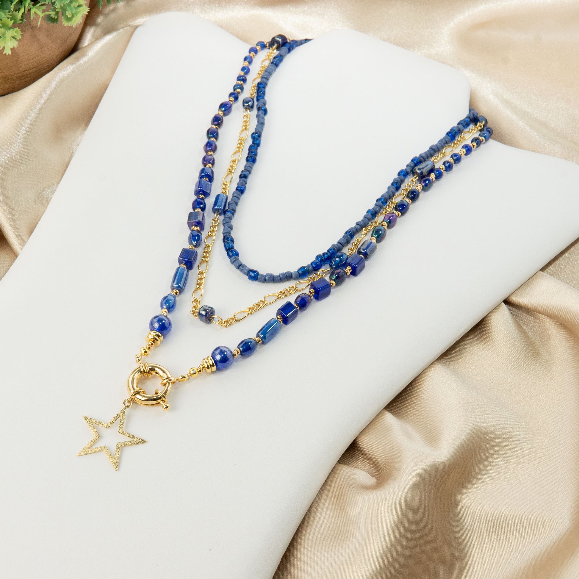 This 3-in-1 Lapis Lazuli Intense Deep Blue Mix & Match Necklace provides versatility and style. With its deep blue hue and unique marine design, this necklace is perfect for any occasion.