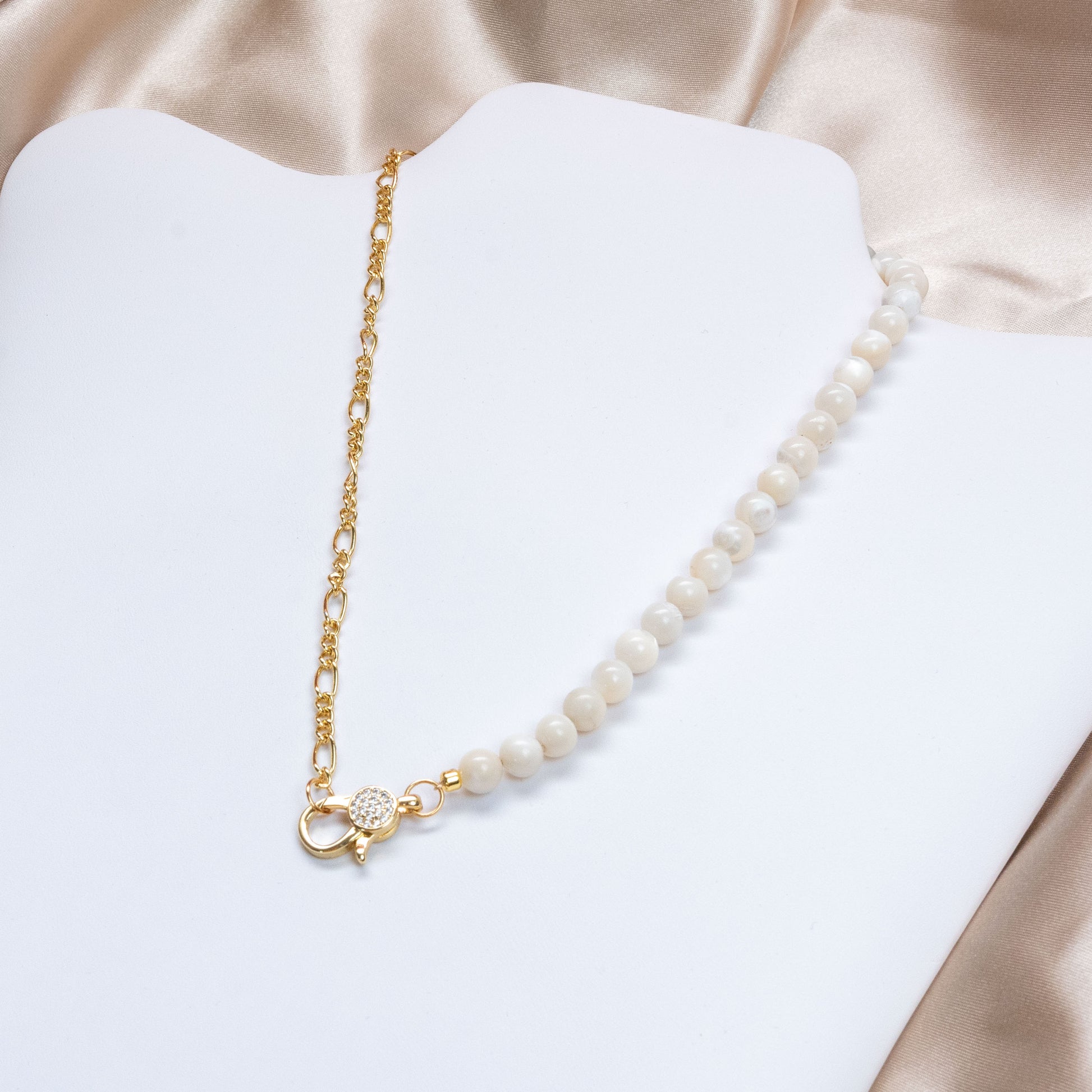 用我们的精美珍珠母项链拥抱低调的奢华——一款百搭单品,可轻松增强您的自然美感,并为您的领口增添一抹闪亮。