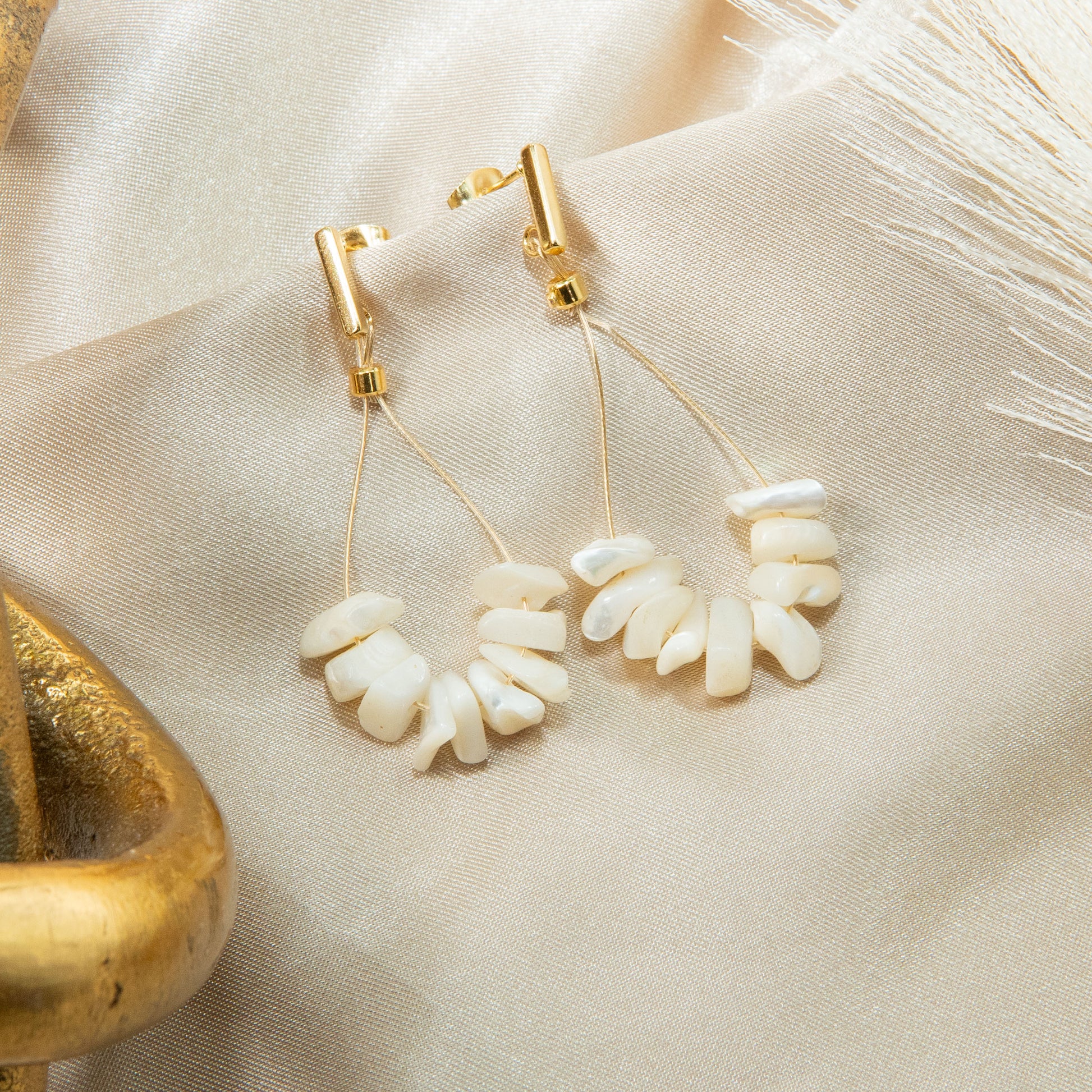 The Pearl Aura earrings from our Element Drop Earrings Collection bring a whisper of luxury to your everyday style. Made with luminous Mother of Pearl, these handmade teardrop earrings are a serene, sophisticated choice for professional women who want their jewelry to feel as graceful and intentional as they are.