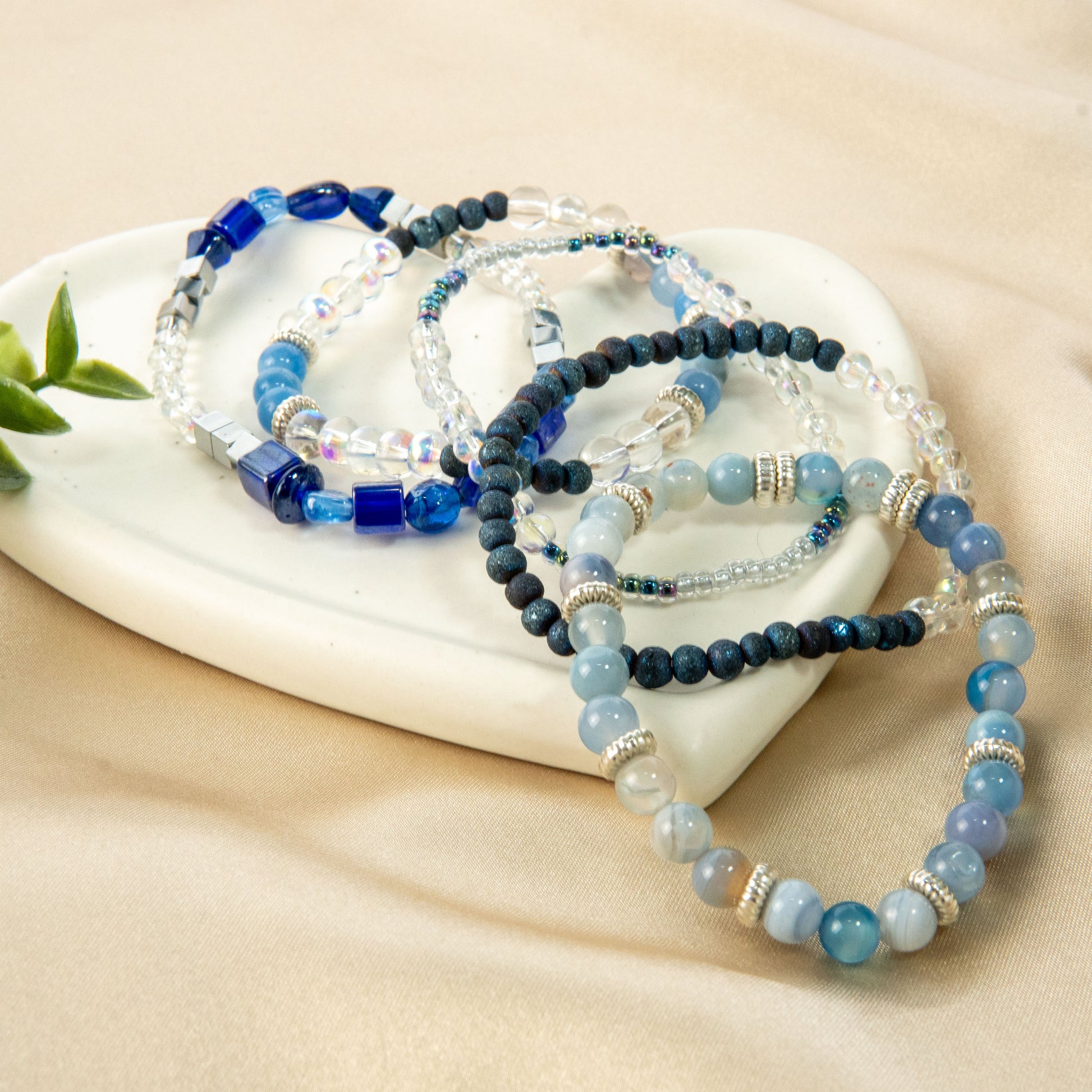 This stackable sparkling blue theme set is perfect for the busy working woman, providing both elegance and comfort with its small gemstone beads.