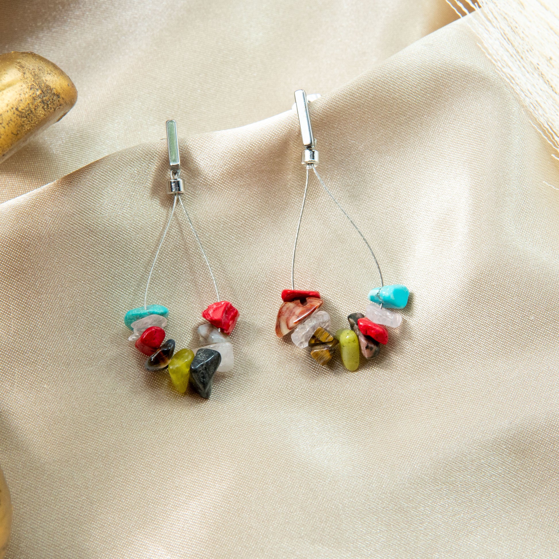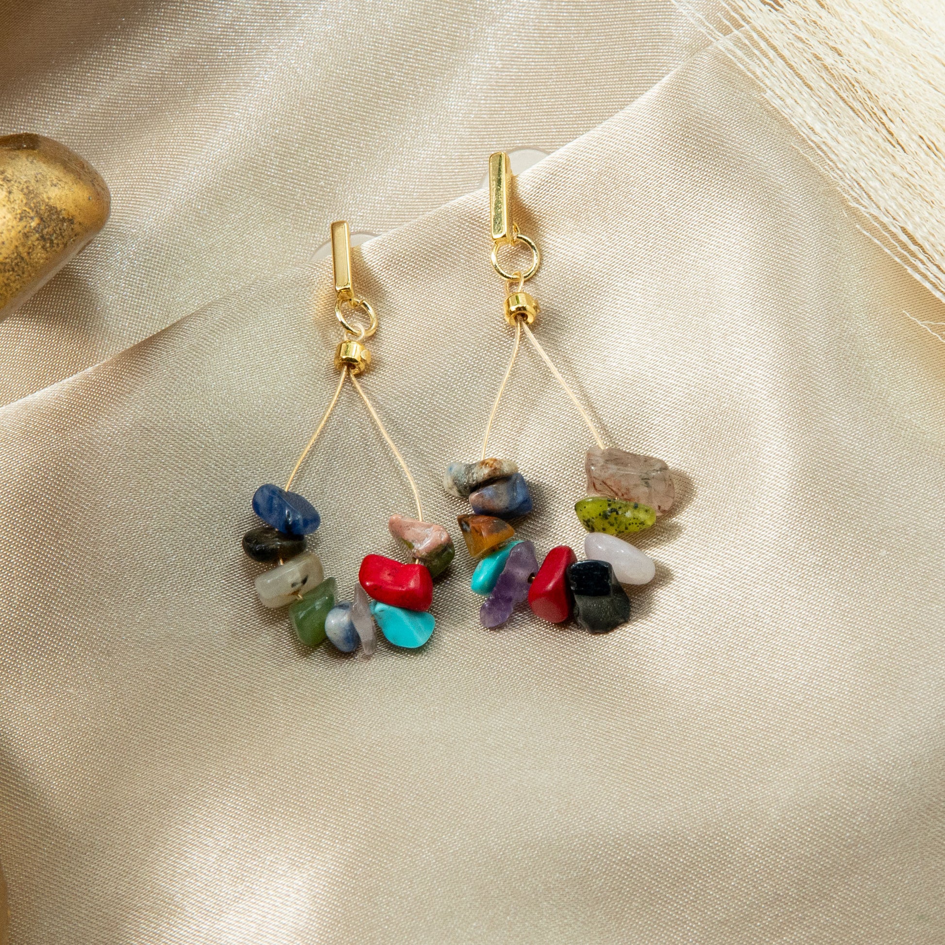 Handcrafted with a carefully chosen mix of multi-color natural stones, these teardrop earrings celebrate your dynamic spirit. Each pair is uniquely radiant featuring a one-of-a-kind combination of hues and textures that catch the light and reflect your individuality. Whether you're in a meeting, on a coffee run, or heading out after hours, these earrings move with you, effortlessly.